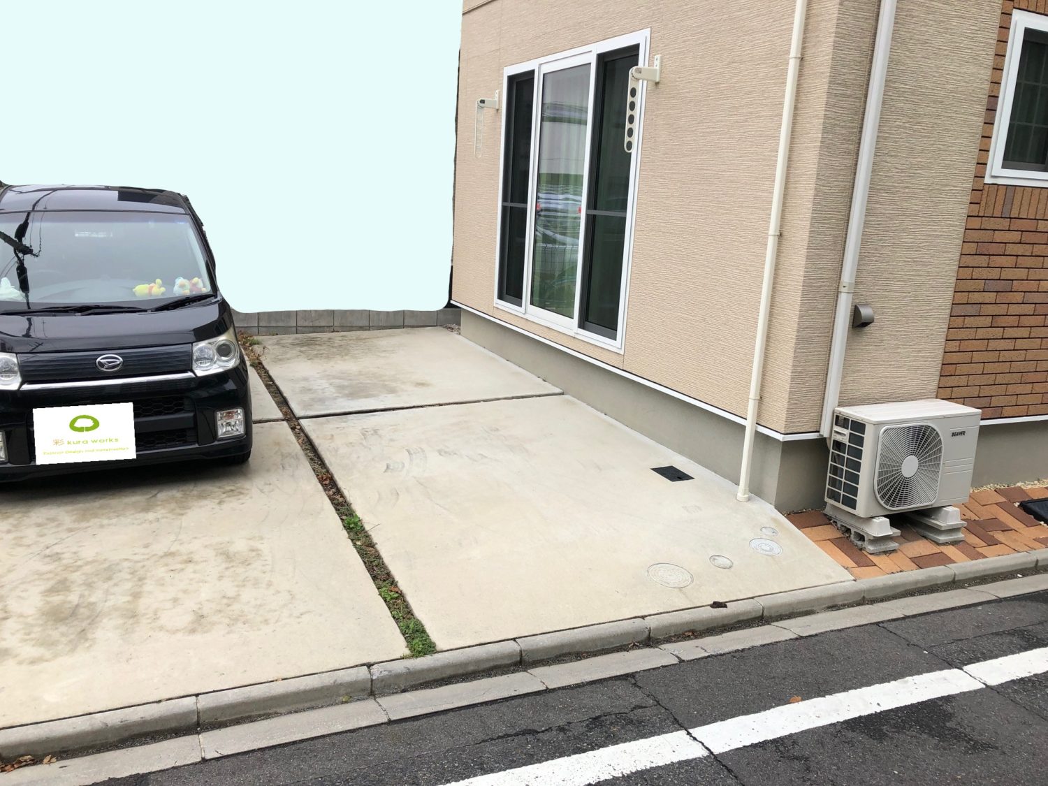 現状は、駐車場として利用されている土間コンクリートを、ドッグラン&目隠しバイナルフェンスで大改造します!